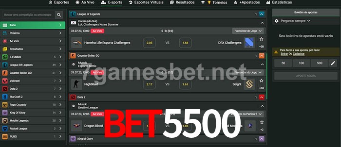 A aposta bet5500 oferece aos jogadores a experiência mais conveniente de apostas em eSports!